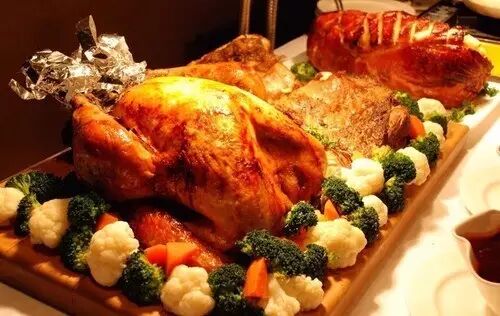 还有火鸡,烤乳猪,布丁,水果派 ...!